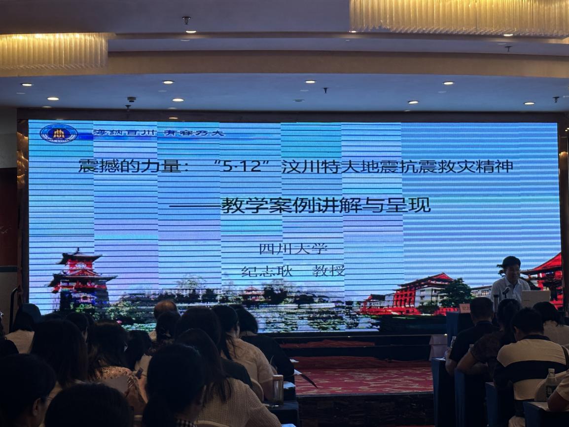8月21日上午,在培训班开班仪式上,四川大学马克思主义学院副院长王洪树致欢迎词,并简要介绍此次实践研修培训班的基本要求和四川大学马克思主义学院的基本情况。开班仪式后,四川大学纪志耿教授为大家讲授《震撼的力量:“5.12”汶川特大地震抗震救灾精神——教学案例讲解与呈现》专题报告,大家跟着纪教授的脚步学习领悟“万众一心、众志成城,不畏艰险、百折不挠,以人为本、尊重科学”的抗震救灾精神,同时在纪教授分享的教学案例中汲取思政课程如何授课的宝贵经验,进一步提升了教师思想素质和理论教学能力。