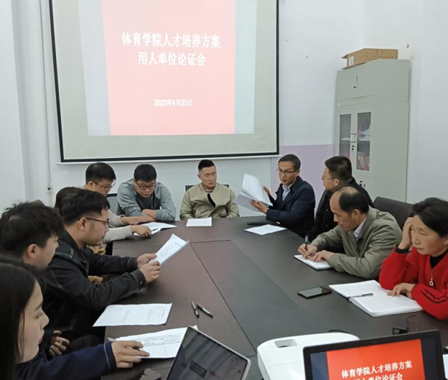 (本网讯:景苑东)为全面提高人才培养质量,扎实推进培养方案编制工作,4月23日,体育学院邀请五家企业对人才培养方案进行论证,认真聆听社会对人才培养的需求。体育学院党政班子成员参加会议,副院长洪燕主持会议。