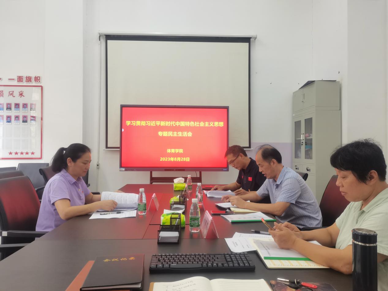 (本网讯:占韦)8月28日上午,体育学院党委领导班子召开二级学院学习贯彻习近平新时代中国特色社会主义思想主题教育专题民主生活会,校党委委员、党委统战部部长万文军到会指导,体育学院领导班子全体成员参加会议,各党支部书记、干部和教师代表列席会议。会议由体育学院党委书记董小军主持。