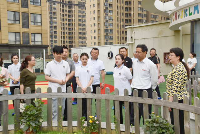 叶观荣一行实地参观了袋鼠BABY托育中心校区、爱贝成长中心校区、亲亲袋鼠早教中心、棒棒贝贝乐高科技中心,深入了解了四个校区的教学区域、教育课程、设施设备、师资力量、园区特色等的情况。