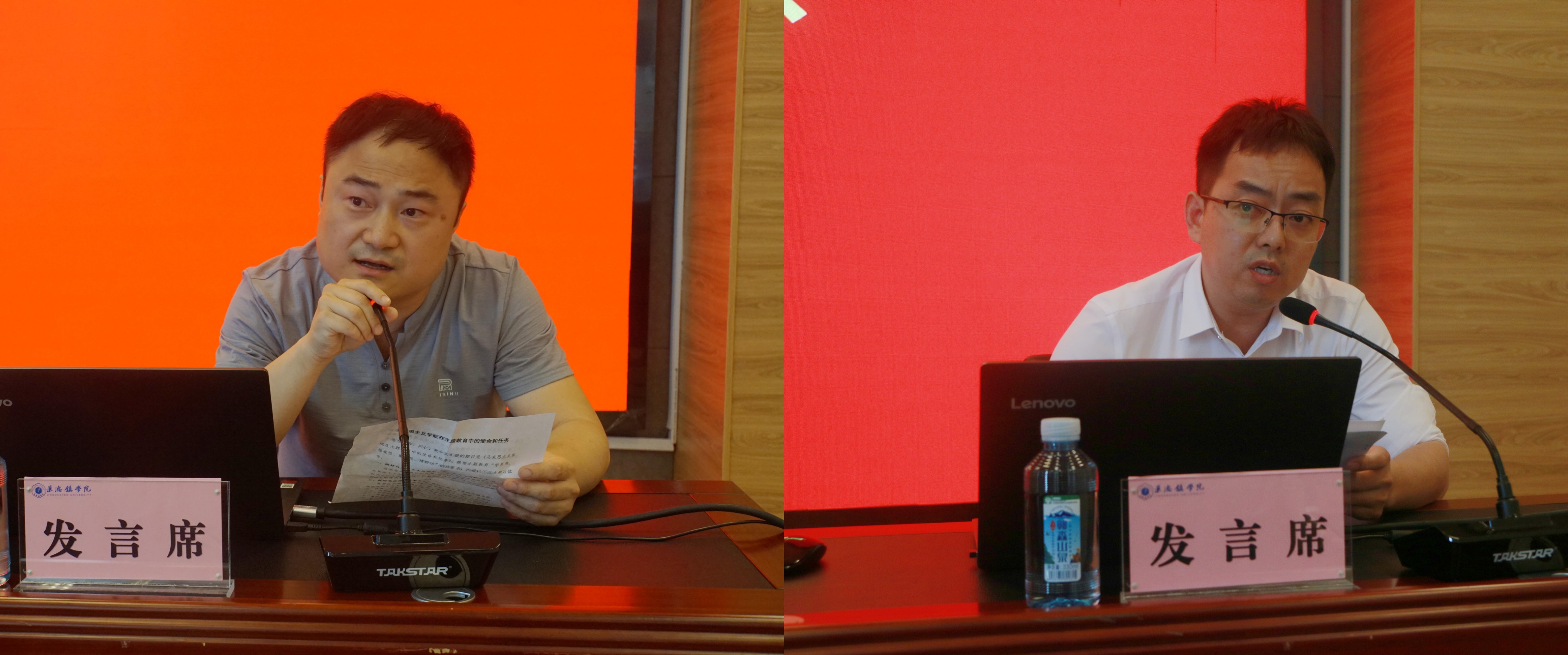 会上,马克思主义学院院长曹志瑜作了题为“马克思主义学院在主题教育中的使命和任务”的交流发言,人文学院院长陈猛作了题为“扎实推进应用型转型工作实现人文学院高质量发展”的交流发言。