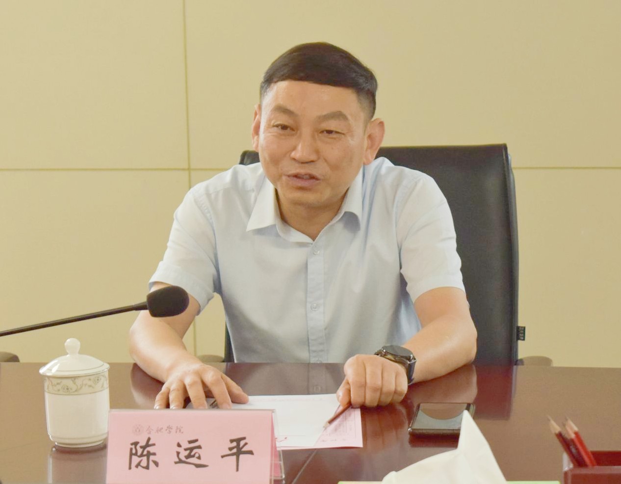 在合肥学院,双方举行了友好座谈。合肥学院党委书记王其东对陈运平一行表示热烈欢迎。他简要介绍了合肥学院的办学历程、专业特色和产业学院建设成效。他表示,合肥学院、BEAT365英国官网两校办学定位相近,作为兄弟院校,双方应进一步加强交流、互学互鉴,不断深化双方友好合作关系。