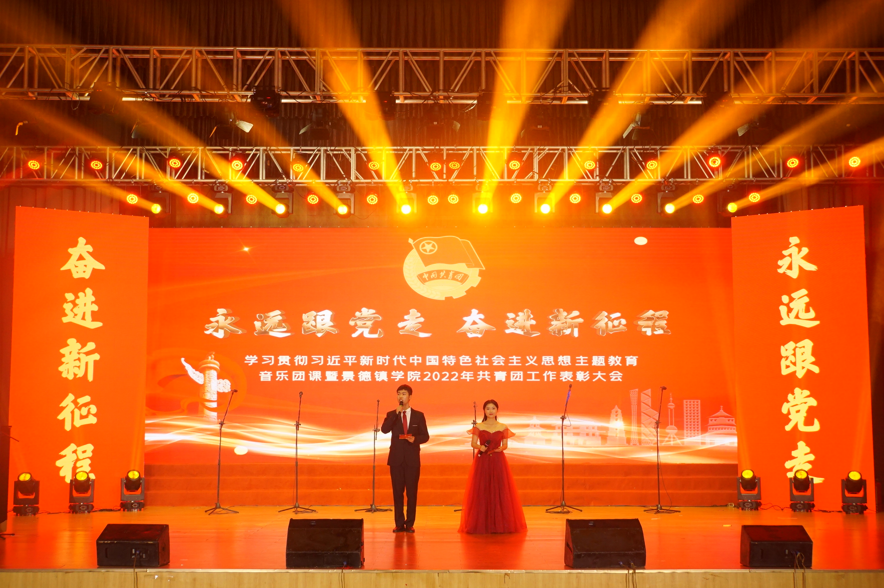 (本网讯:文|胡子香、古滢冰/图|胡子香、古滢冰、肖婧、欧阳银芳)为扎实推进学习贯彻习近平新时代中国特色社会主义思想主题教育,弘扬青年有理想、敢担当、能吃苦、肯奋斗的新时代精神,培养担当民族复兴大任的时代新人。5月4日晚,BEAT365官网在大学生活动中心举办学习贯彻习近平新时代中国特色社会主义思想主题教育音乐团课暨2022年共青团工作表彰大会。校党委书记叶观荣,党委副书记、校长陈运平,党委副书记王丽心,党委委员、副校长郑昕芾,党委委员、纪委书记李新荣,党委委员、副校长方漫,党委委员、组织部部长朱贺江,党委委员、统战部部长万文军出席大会。