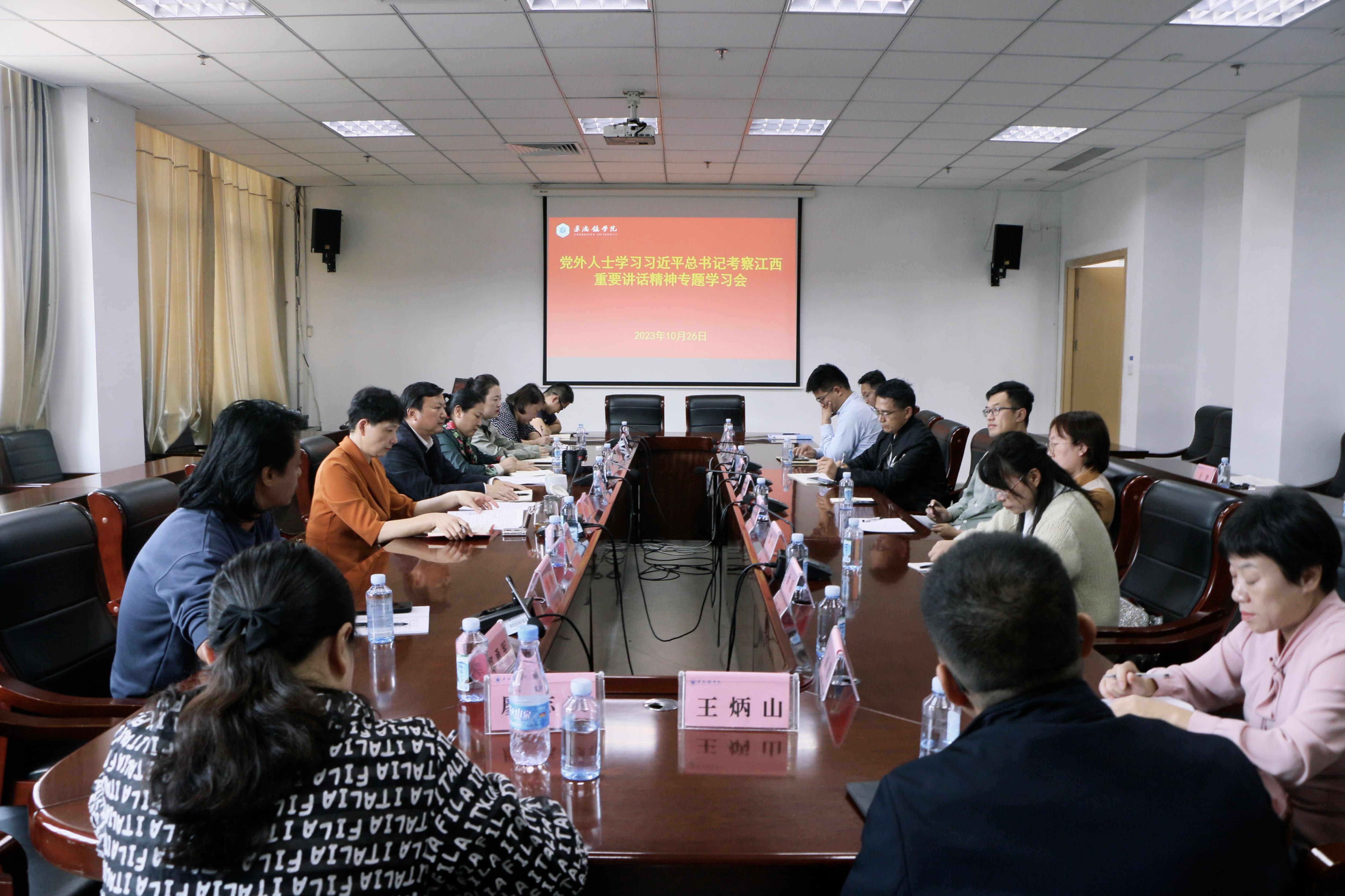 就进一步做好习近平总书记考察江西重要讲话精神的贯彻落实,王丽心表示,各民主党派、无党派人士和党外知识分子要充分认识学习宣传贯彻习近平总书记考察江西重要讲话精神重大政治意义、战略意义、时代意义、实践意义,迅速掀起学习宣传贯彻习近平总书记考察江西重要讲话精神的热潮;要以实际行动把习近平总书记考察江西重要讲话精神转化为做好工作的强大动力,以实际行动走在前、勇争先、善作为,推进学校工作高质量发展;要共同致力于景德镇国家陶瓷文化传承创新试验区建设,促进BEAT365官网各项工作迈向新台阶,为奋力谱写中国式现代化江西篇章贡献更多景院力量和智慧。